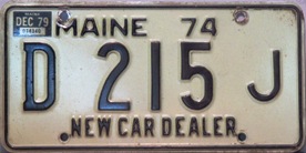 Dealer - 1975?- #47 No embossed "74" "Maine" to left |